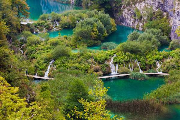 Panoramaaufnahmen aus dem Nationalpark Plitvicer Seen machen Reiseführer von Kroatien zum farbenreichen Bildband. Beinahe unwirklich bildeten die Naturgewalten dieses unberührte Fleckchen Erde. Wasserfälle gehen in reißende Bäche über, die wiederum verwunschene Badeorte schaffen. Wandern, schwimmen und staunen: Hier kommen alle auf ihre Kosten.