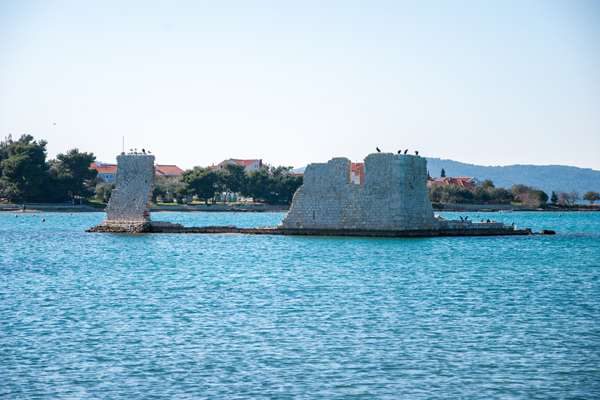 Dass Sukosan auf eine lange Geschichte als attraktiver Touristenort blickt, bezeugt der Palac. Herrschaftlich ragen die Mauern der Ruine aus dem klaren Wasser der Bucht. Im 15. Jahrhundert hat die Kirche den Palast auf einer künstlichen Insel errichten lassen. Den Elementen und Angriffen konnte das imposante Gebäude nicht trotzen. Dennoch gibt es im Sonnenuntergang ein malerisches Bild ab. Nicht umsonst ist der Palac das Wahrzeichen von Sukosan.