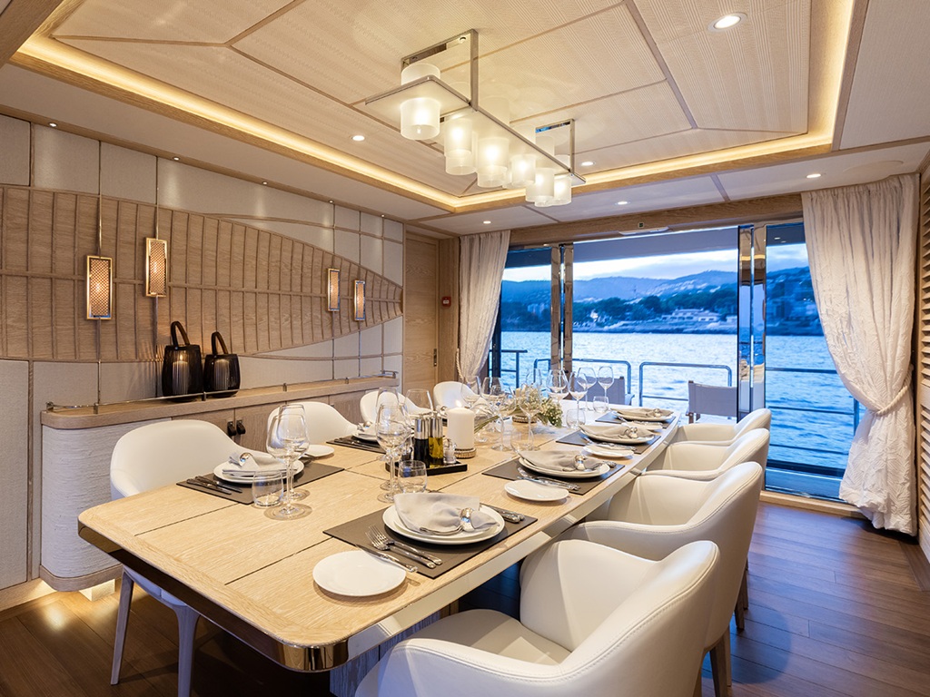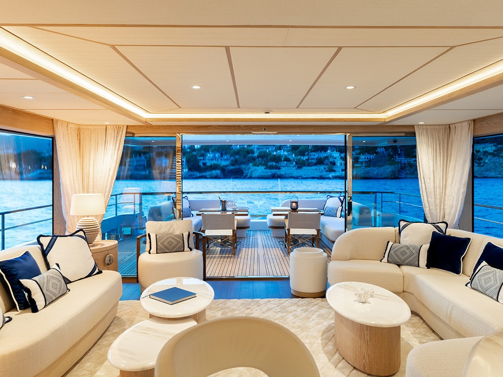 An Bord erwartet die Gäste ein super modernes, helles Interieur, das Offenheit, Stil und Wohlgefühl vereint. Großzügige Wohnbereiche, lichtdurchflutete Räume und hochwertige Materialien schaffen eine luxuriöse Atmosphäre, die zum Entspannen und Genießen einlädt.