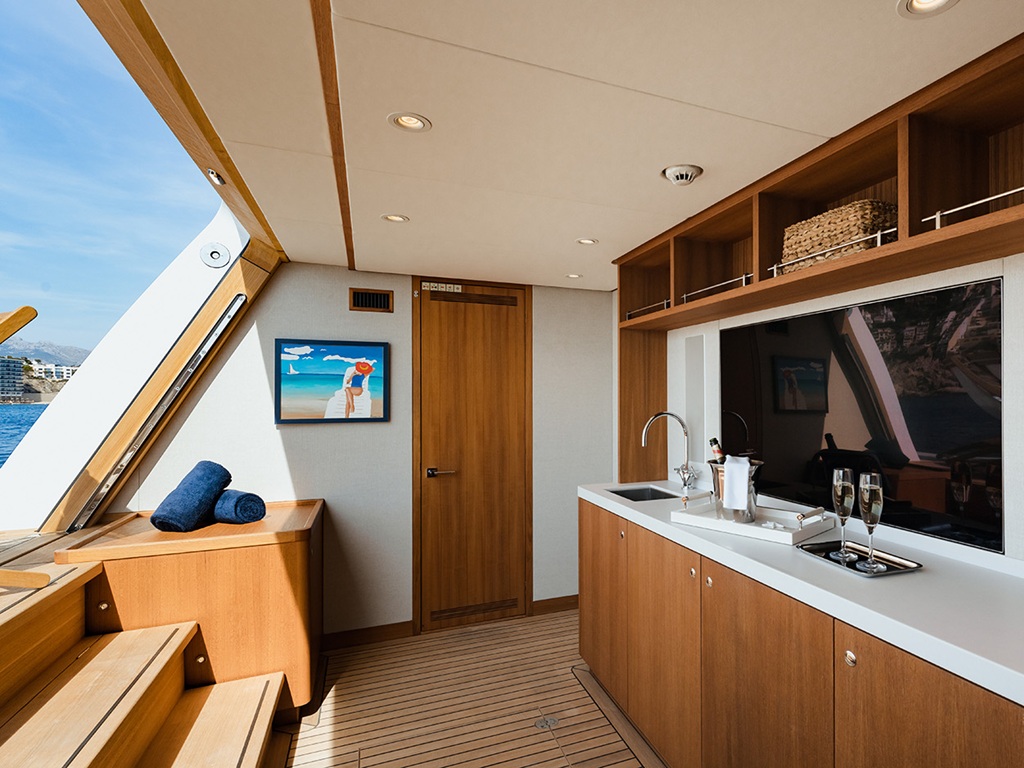 Ein herausragendes Highlight der CALYPSO I ist der elegante Deck-Jacuzzi, ideal für entspannte Stunden unter der Mittelmeersonne oder romantische Abende bei Sonnenuntergang. Ergänzt wird das Erlebnis durch ein vielseitiges Angebot an Wassersportmöglichkeiten, das Abwechslung, Spaß und Action garantiert.