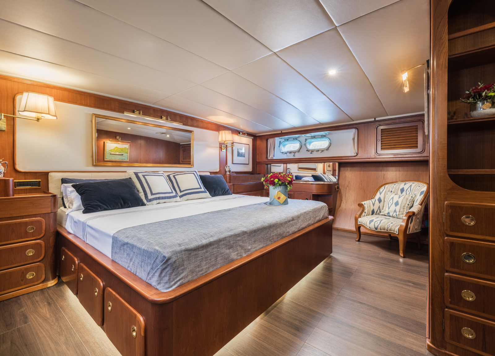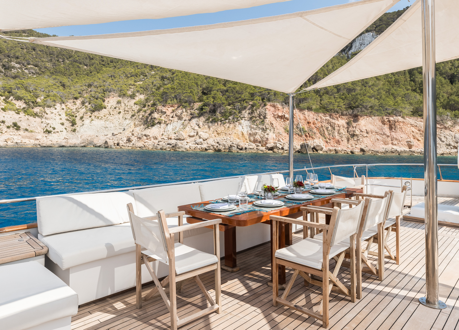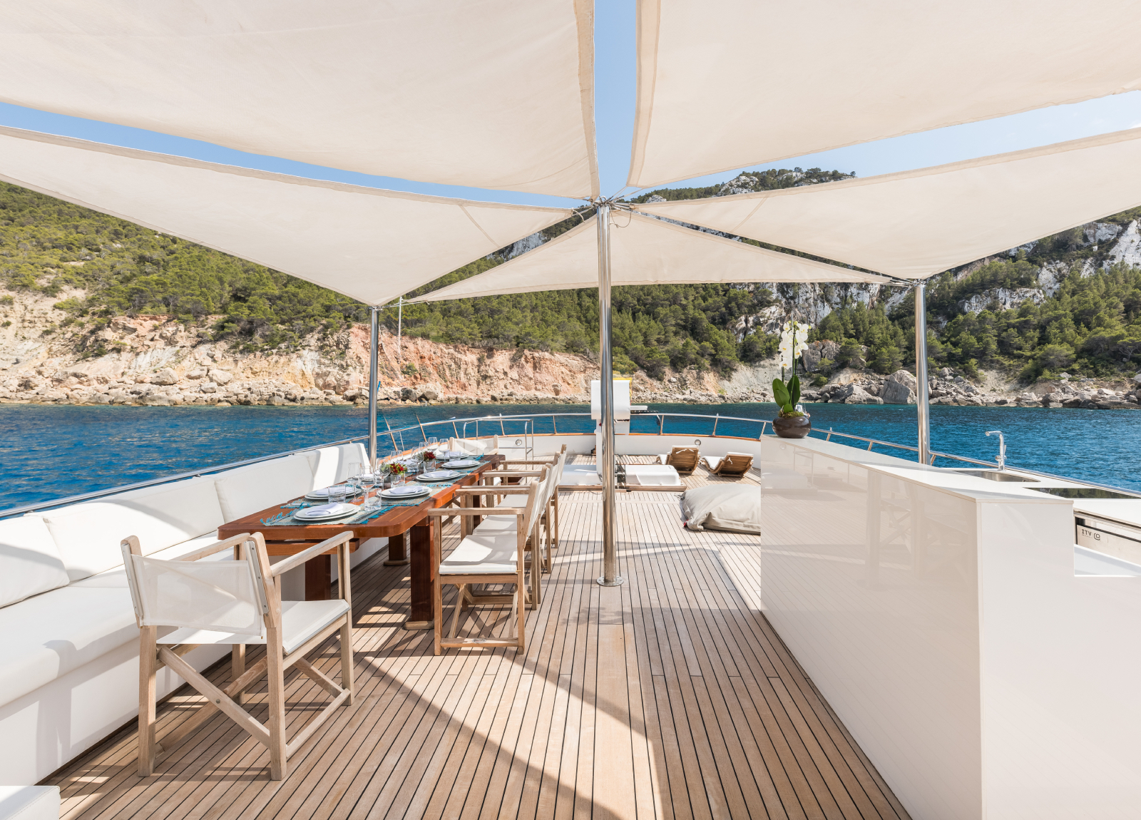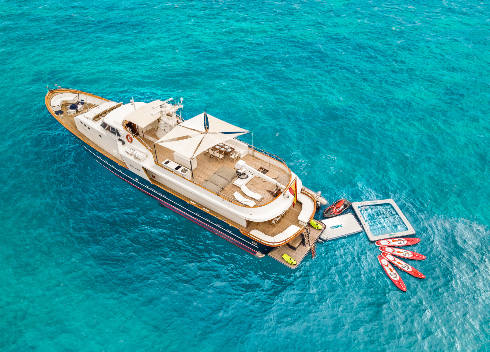 Kommen Sie an Bord der SPIRIT OF MK, einer prächtigen 34 m langen klassischen CRN-Yacht. Das 1980 gebaute und 2026 komplett überholte Kultschiff steht in hervorragendem Zustand zum Chartern zur Verfügung. Die Yacht bietet modernen Komfort, einen geräumigen Innenraum und viel Platz an Deck und ist mit ihrem unverwechselbaren Design weltweit unterwegs, wo immer sie anlegt. Chartern Sie SPIRIT OF MK auf den Balearen, um versteckte Buchten und kristallklare Gewässer rund um Ibiza, Mallorca und Menorca zu erkunden. Diese klassische Yacht bietet Platz für bis zu 12 Gäste in 5 Kabinen mit eigenem Bad, darunter eine luxuriöse Masterkabine, eine VIP-Kabine, eine Doppelkabine und 2 Zweibettkabinen, und garantiert so ein außergewöhnliches Erlebnis. Genießen Sie die verschiedenen Decksbereiche zum Essen im Freien, Entspannen und für Wassersportaktivitäten, ausgestattet mit den neuesten Gadgets für maximales Vergnügen.