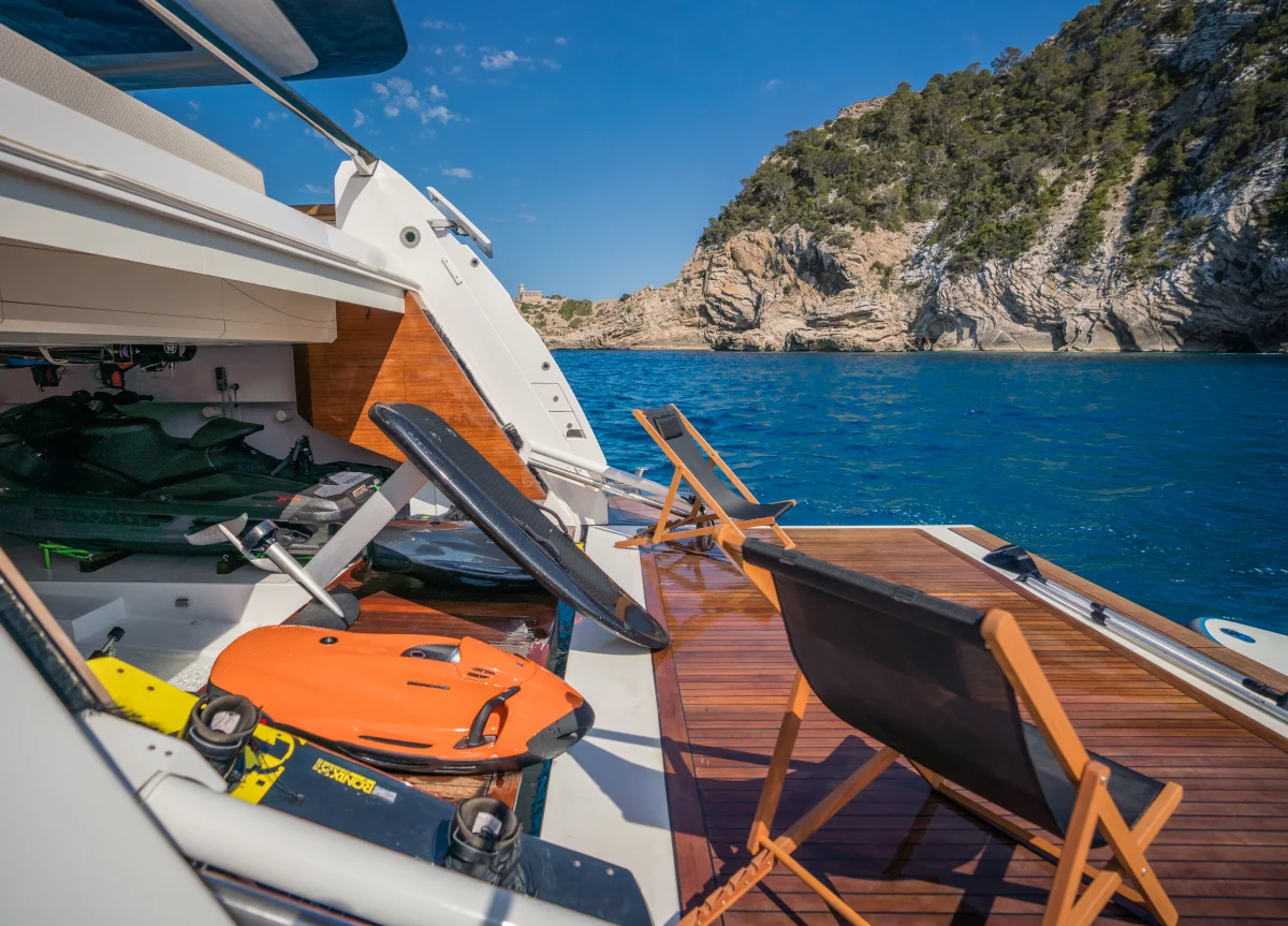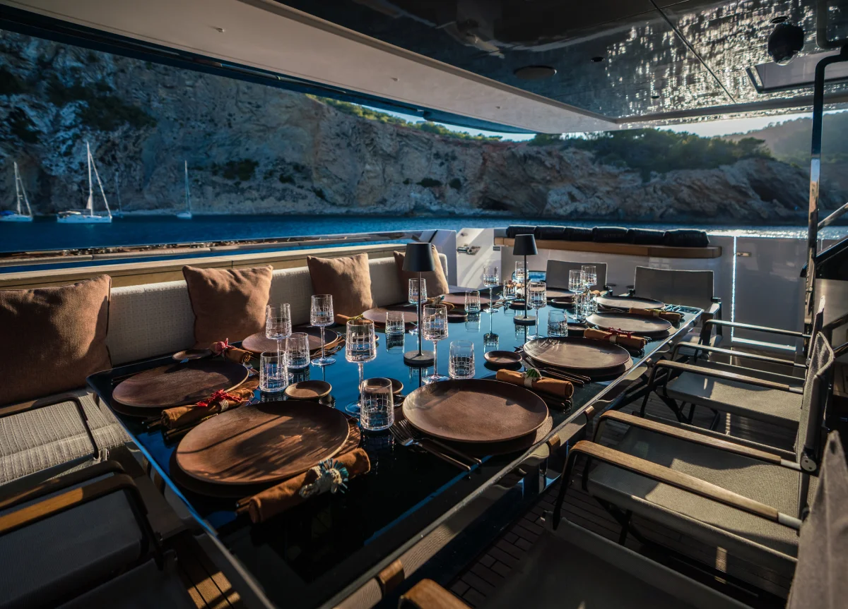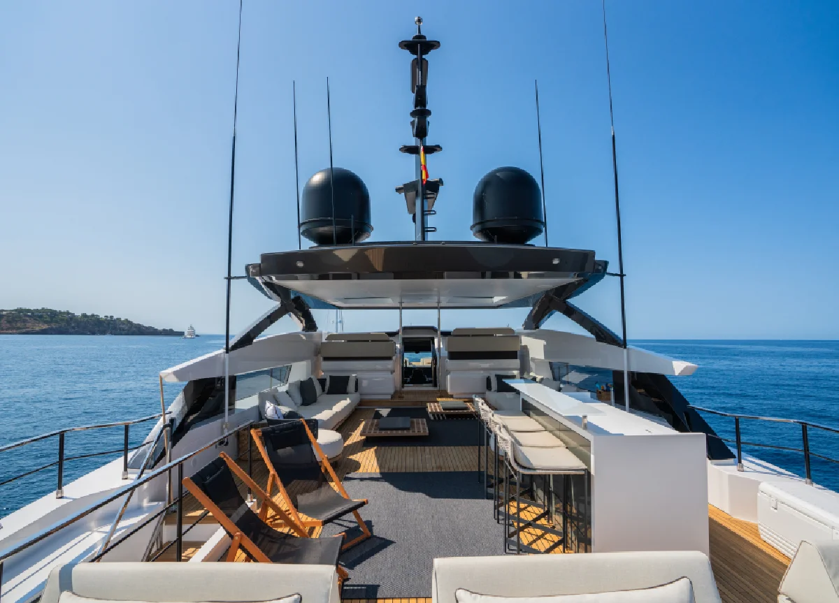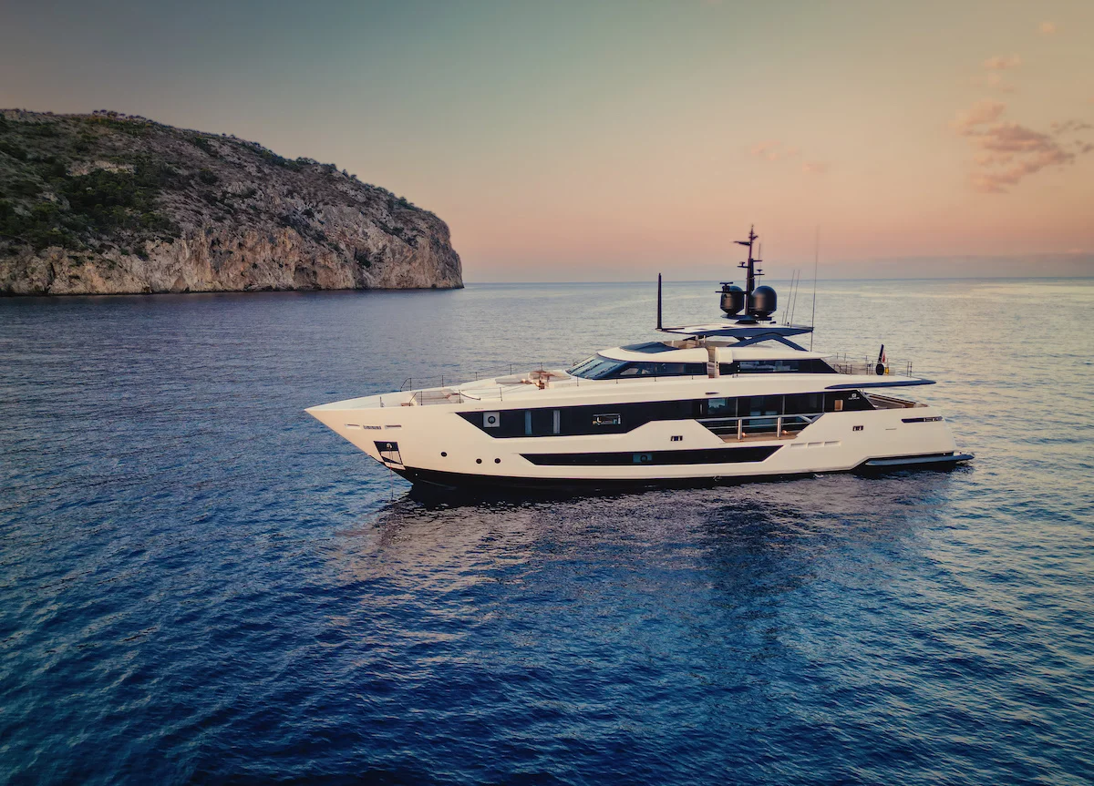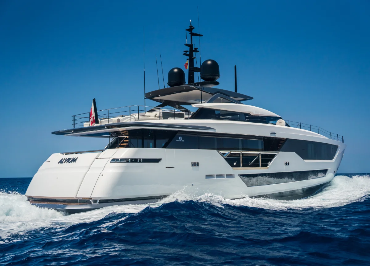 Die hinreißende 2022 Custom Line 33m Yacht “Alvium” ist das Ergebnis der Zusammenarbeit zwischen Paszkowski Designstudio und den Technikern der Ferretti Gruppe. Die Yacht ist ein Inbegriff von Stil und Komfort, praktische Räume gepaart mit modernster Technologie. Eine professionelle 5-köpfige Crew wird sich um die Gäste kümmern, während sie die wunderschönen Balearen erkunden.