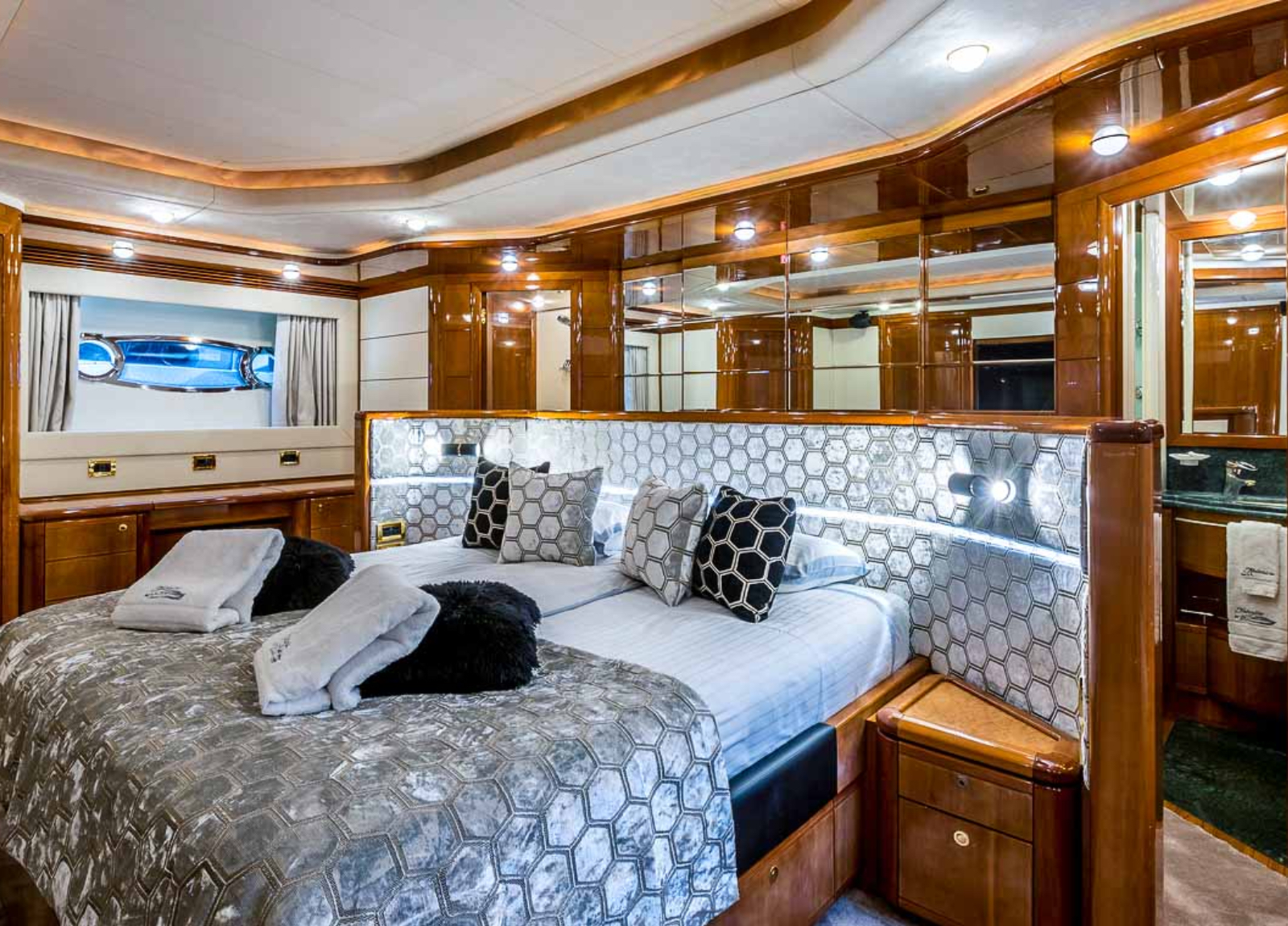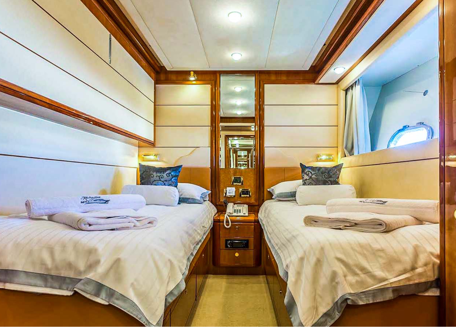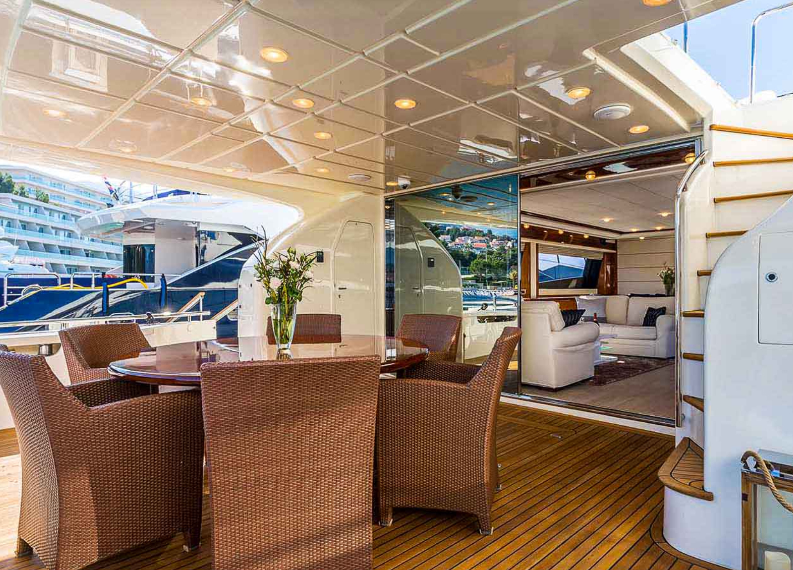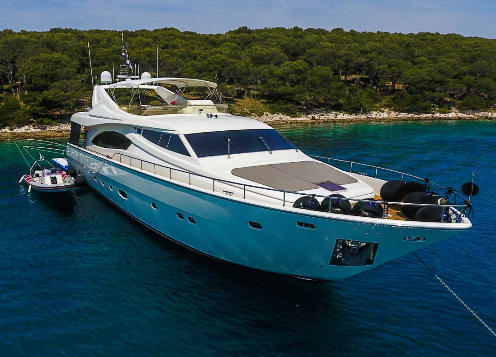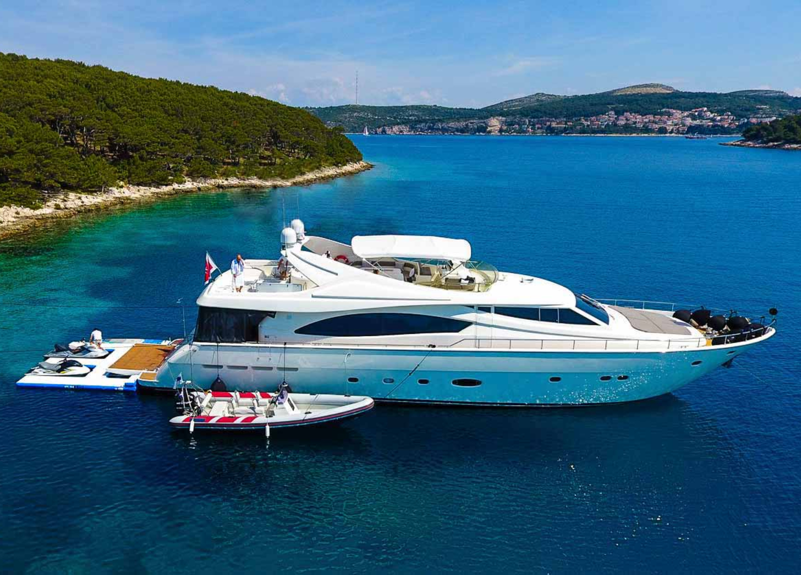 Miss Katariina ist eine 27 Meter, kinderfreundliche Luxusyacht, die von ihrer Basis in Trogir, Kroatien, aus die Adria befährt. Dank ihrer umfassenden Überholung im Jahr 2020 ist die Yacht in einem hervorragenden Zustand. Die Ferretti 880 bietet Platz für bis zu zehn Gäste in vier Kabinen mit eigenem Bad, darunter eine Master-Suite mit Whirlpool. Darüber hinaus verfügt die Yacht über ein Sonos-System, einen Grill, einen Jacuzzi und eine umfangreiche Wassersportausrüstung.