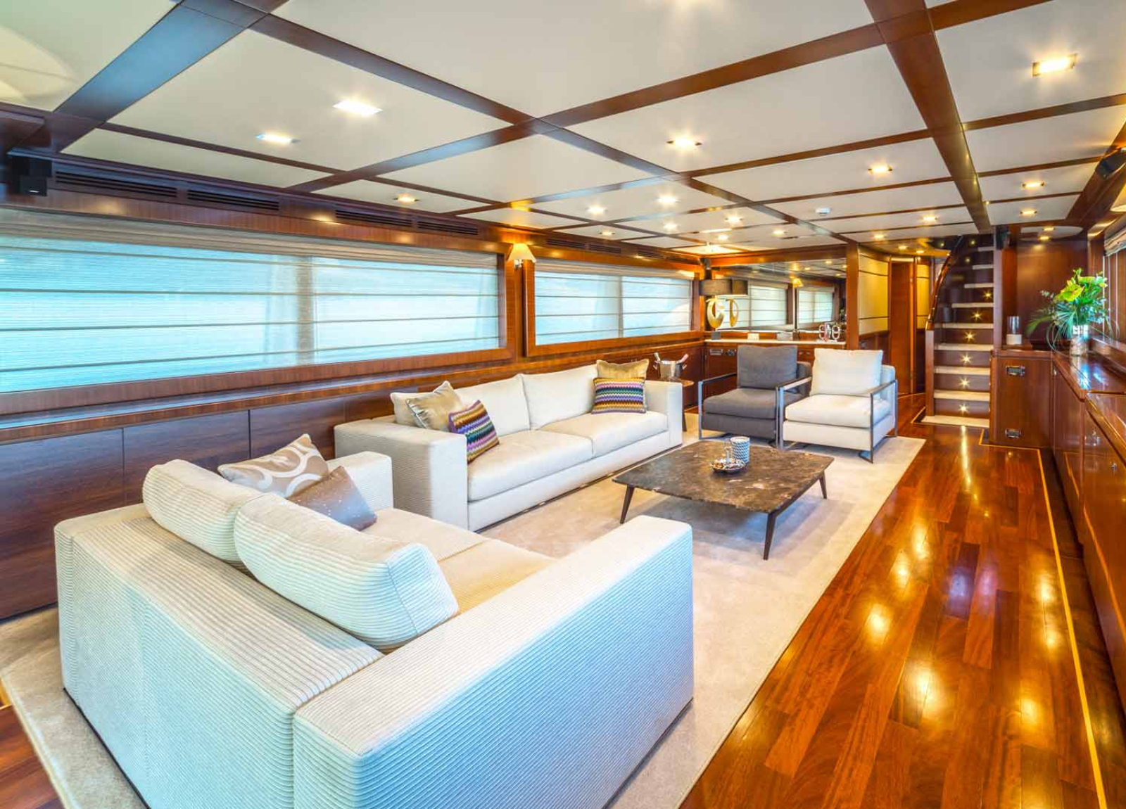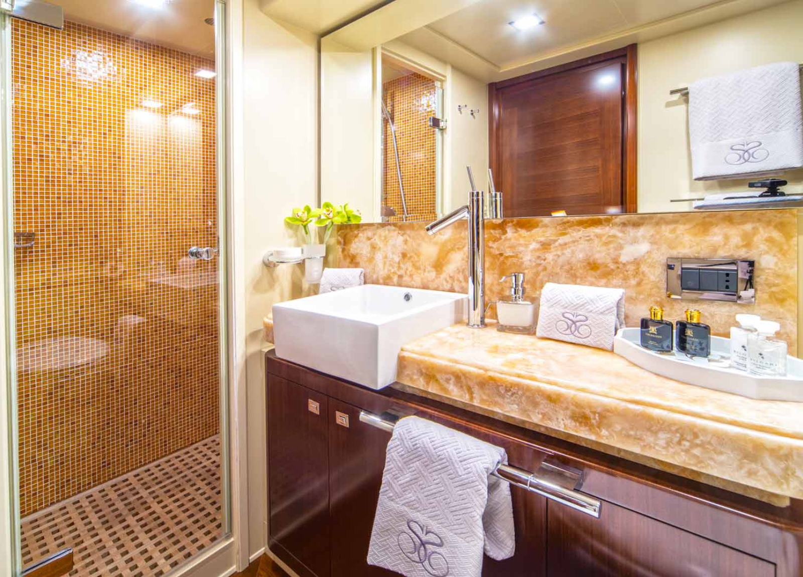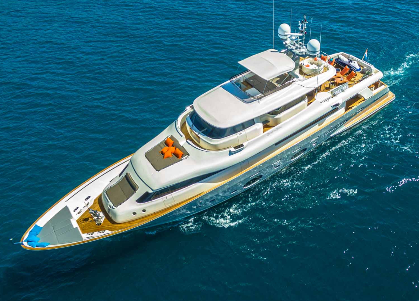 Mit ihren drei geräumigen Decks steht die Ferretti Navetta 33 “Seventh Sense” für großzügigen Lebensraum und besonderen Stil dank ihres Innen- und Außendesigns von Zuccon International. Die Yacht navigiert bequem die kroatischen Gewässer mit Stabilisatoren in Fahrt und vor Anker. Sie bietet Platz für 10 Gäste in 5 Kabinen, darunter eine Masterkabine mit begehbarem Kleiderschrank auf dem Hauptdeck sowie zwei VIP-Kabinen und zwei Zweibettkabinen auf dem Unterdeck. Ihr großzügiges Wassersportangebot rundet das Erlebnis perfekt ab.