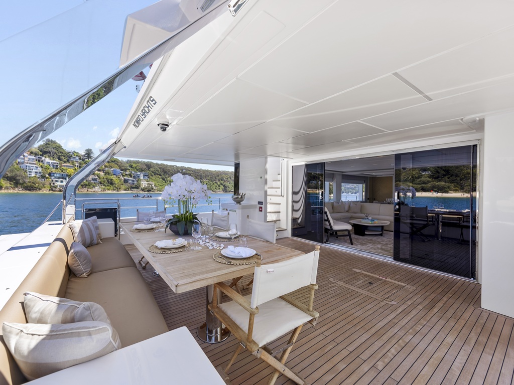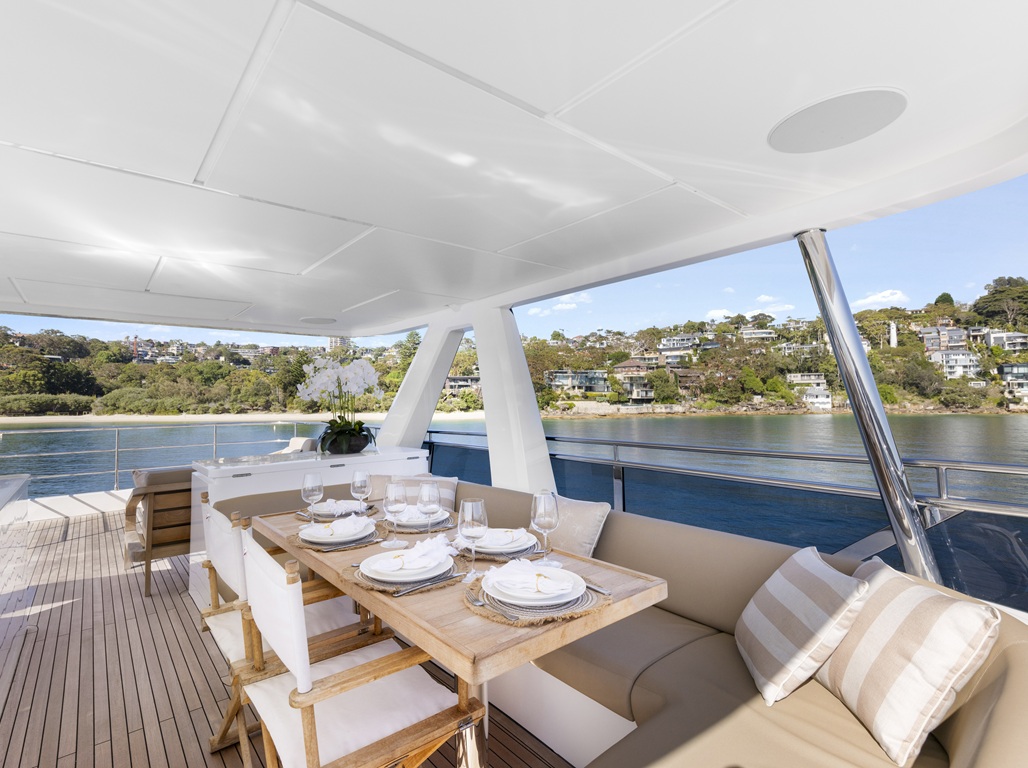 An Bord der BLUESTONE erwartet Gäste eine professionelle und freundliche Crew, die mit erstklassigem Service dafür sorgt, dass jeder Wunsch erfüllt wird. Die großzügigen Decks laden zum Entspannen, Sonnenbaden und Genießen der spektakulären Ausblicke auf Sydneys ikonische Sehenswürdigkeiten ein. Ob stilvolle Events, private Feiern oder ein entspanntes Dinner unter freiem Himmel – BLUESTONE bietet für jeden Anlass den perfekten Rahmen.