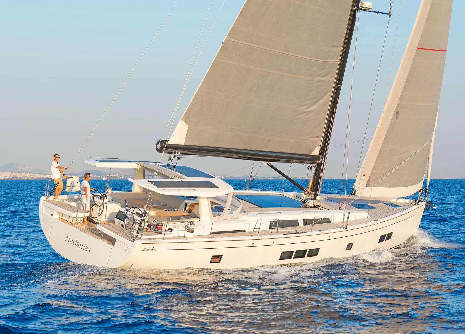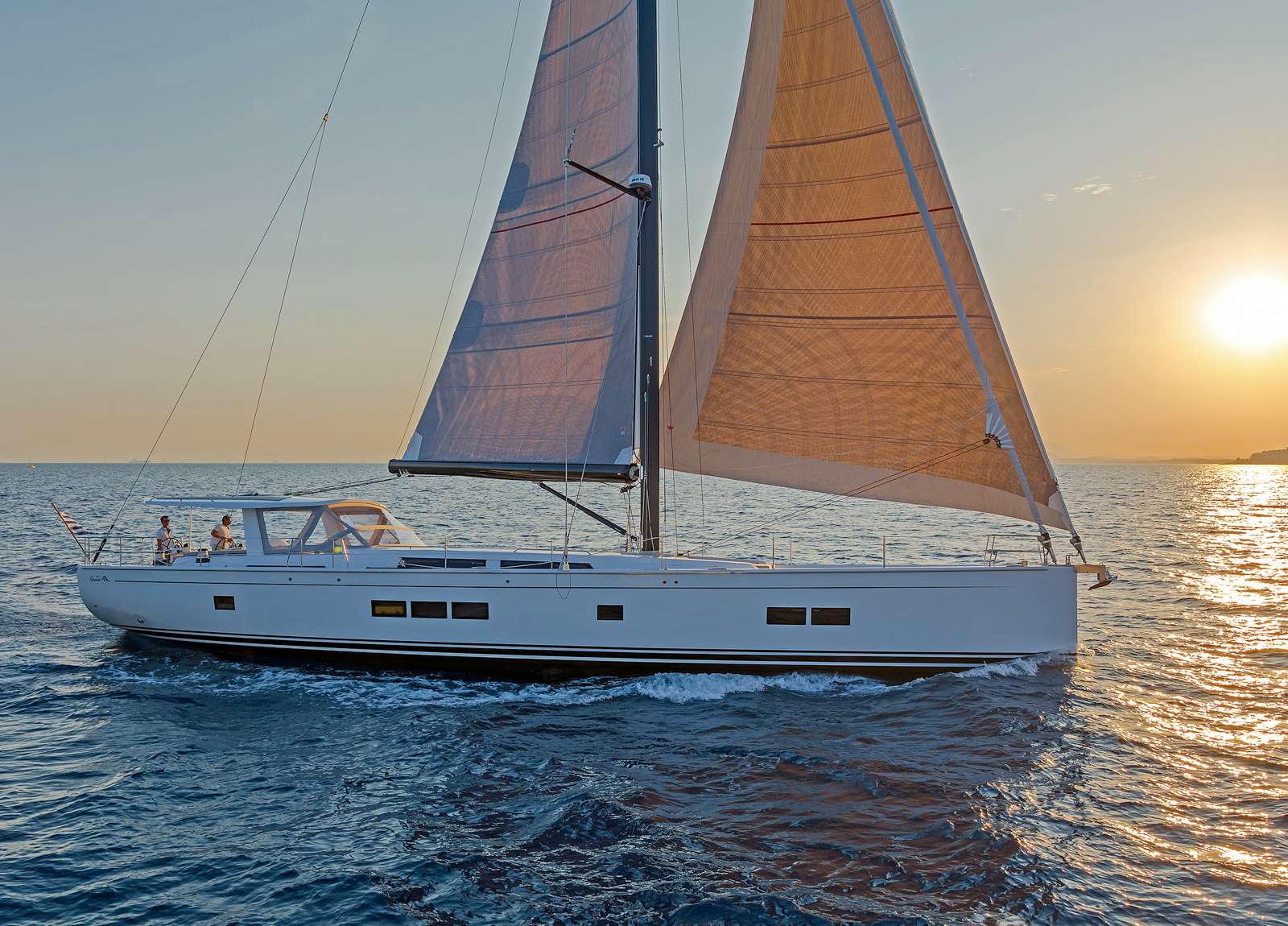 Die Hanse 675 “Alizee” ist perfekt für einen entspannten Urlaub rund um die griechischen Inseln. Die Segelyacht verfügt über ein großes festes Hardtop, das im Außenbereich der Yacht Schatten spendet.