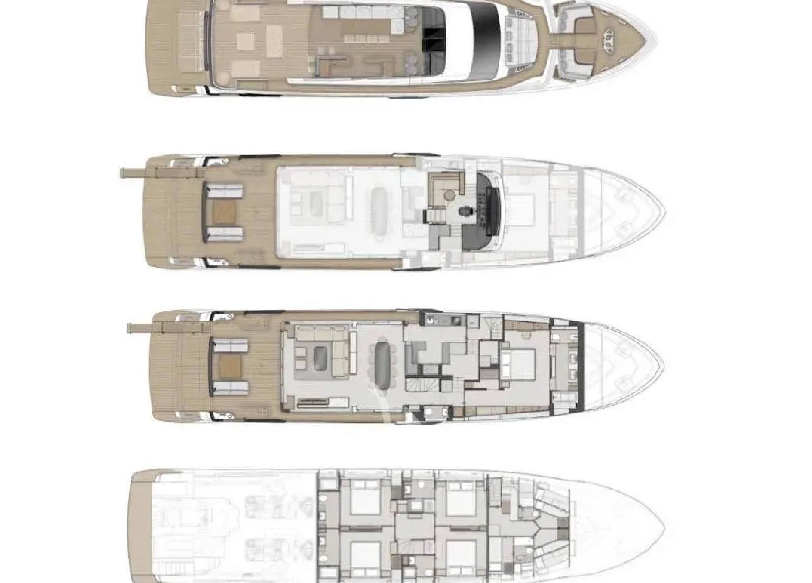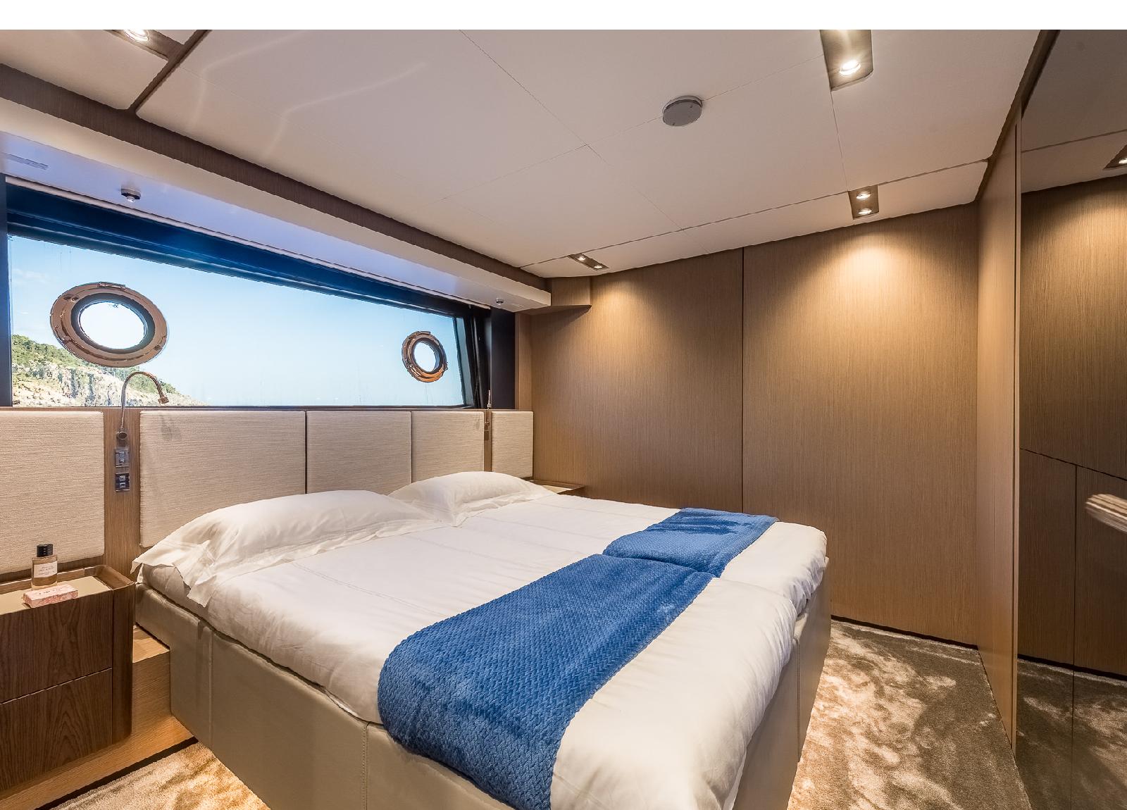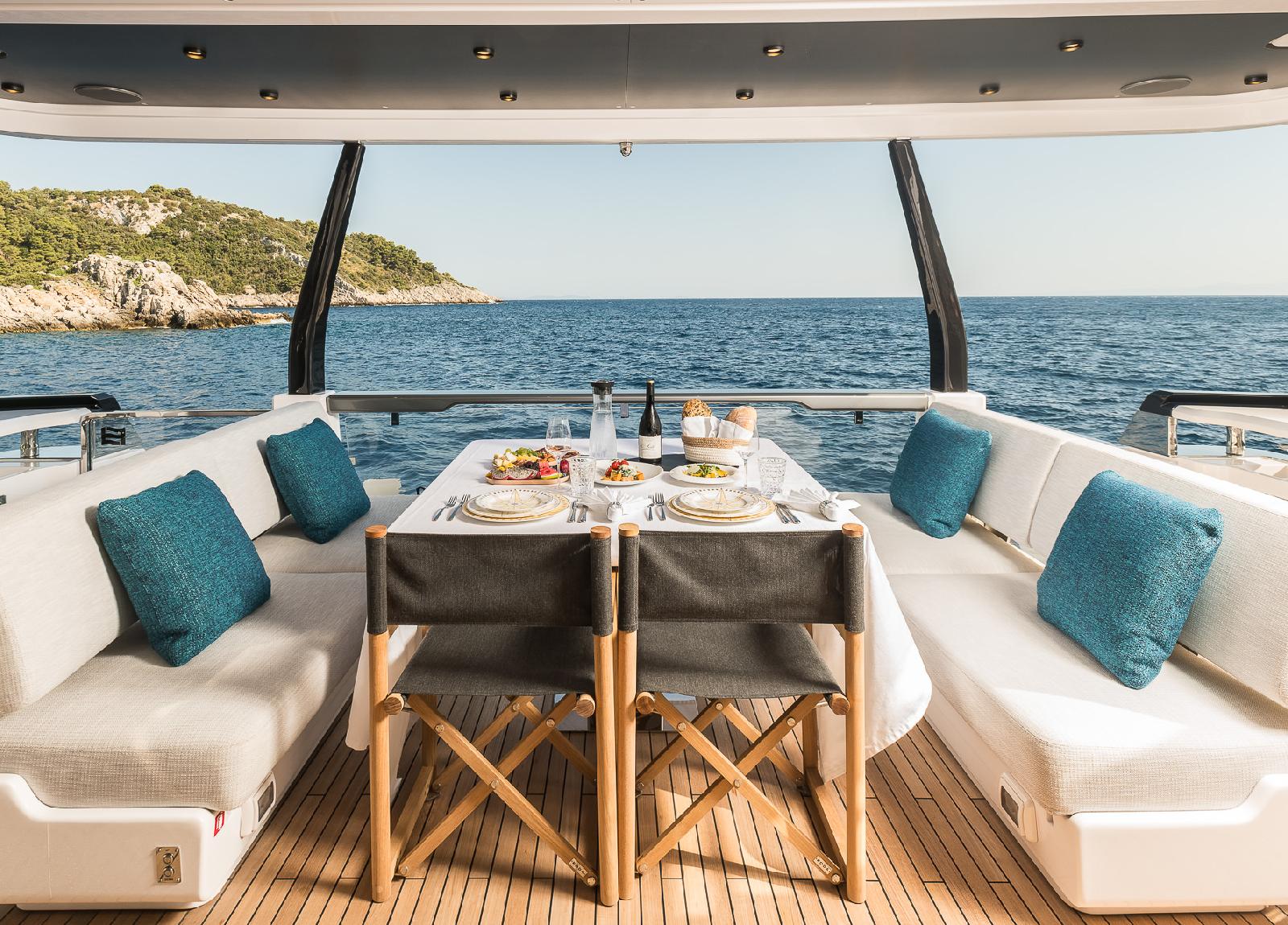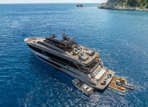 Diese luxuriöse Motoryacht von Ferretti, Baujahr 2024, bietet Platz für 10 Gäste.