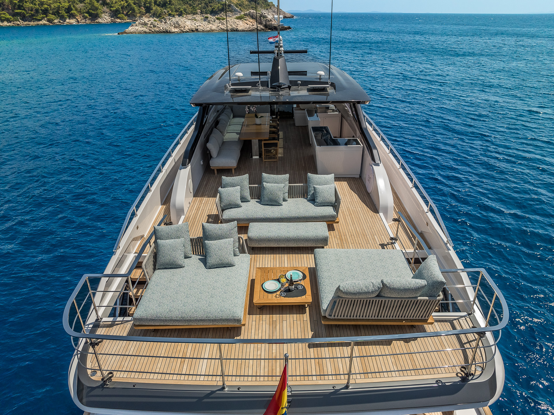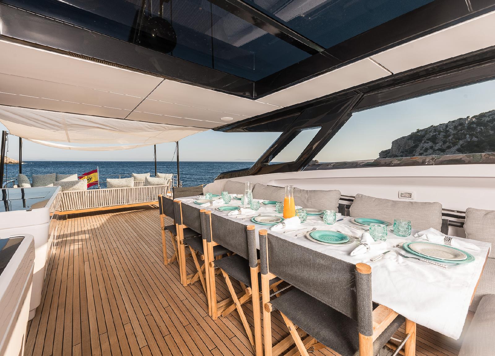 Die Stabilisatoren sorgen für eine ruhige Fahrt und Aufenthalt vor Anker. Umfangreich ausgestattet, bietet diese Yacht alles für einen perfekten Charter rund um die Balearen. Mit der MY “Nailu+” erleben Sie großzügigen Komfort und Luxus pur.