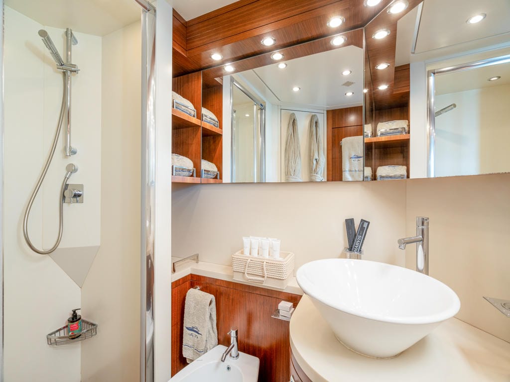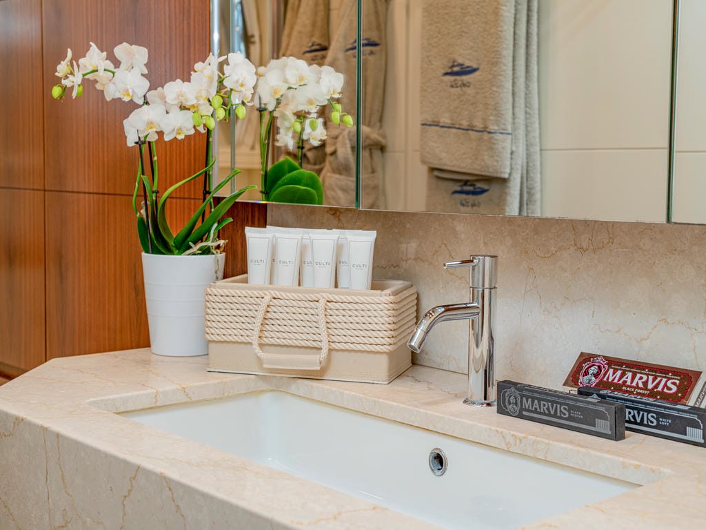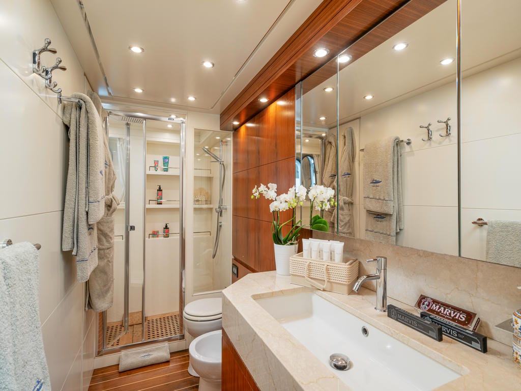 Für Abwechslung und Spaß sorgt eine umfangreiche Wassersportausstattung: ein Jet Tender , ein Seadoo Sparks Jetski (3 Sitze, Führerschein erforderlich), ein Seabob F5, zwei SUPs, Schnorchel-Equipment, eine Jobe Floating Island sowie ein 4×4 m Jobe Floating Pool mit integriertem Quallenschutz.