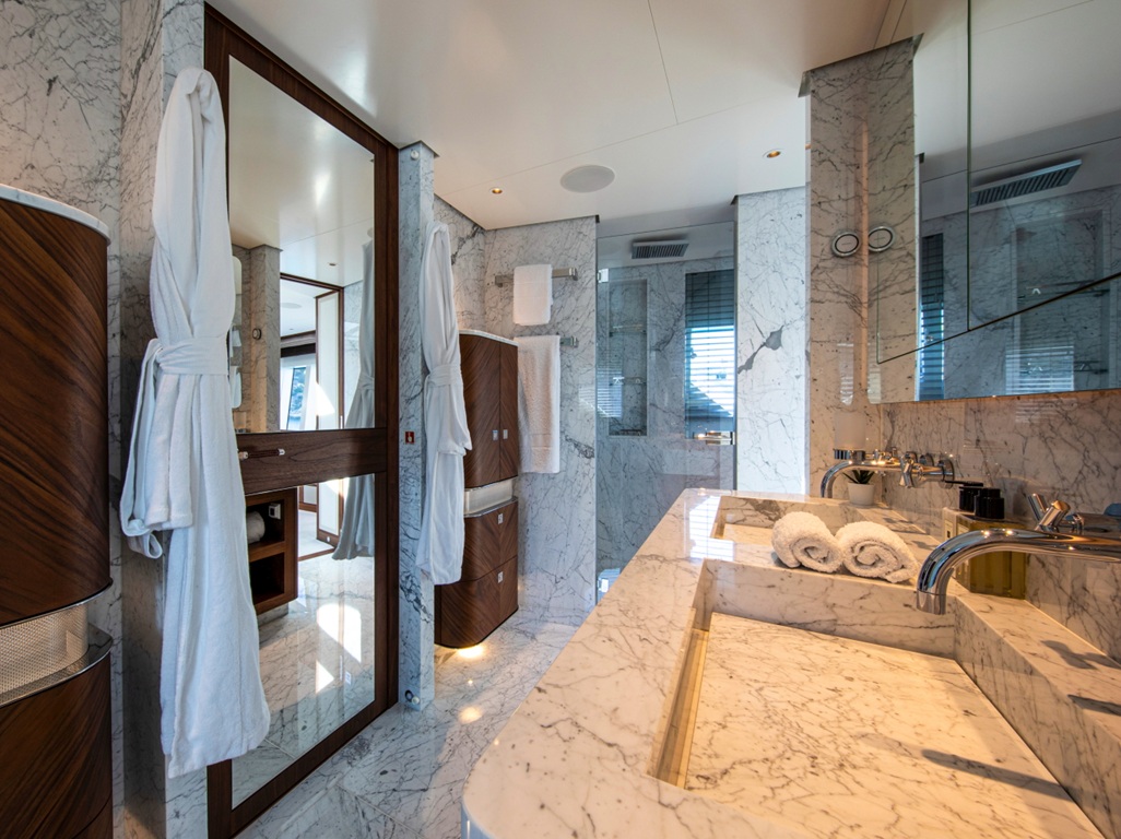 An Bord eröffnet sich eine Welt vollendeter Entspannung. Das Herzstück an Deck ist der großzügige Jacuzzi – hier wird die DELTA ONE zur privaten Wohlfühloase. Ein Glas edlen Weins in der Hand, der Sonnenuntergang am Horizont, das sanfte Rauschen der Wellen: ein unvergleichlicher Moment aus Ruhe, Luxus und Meer.