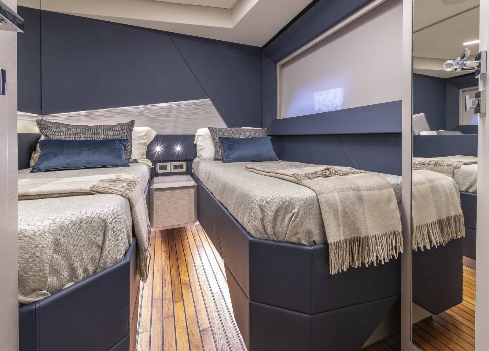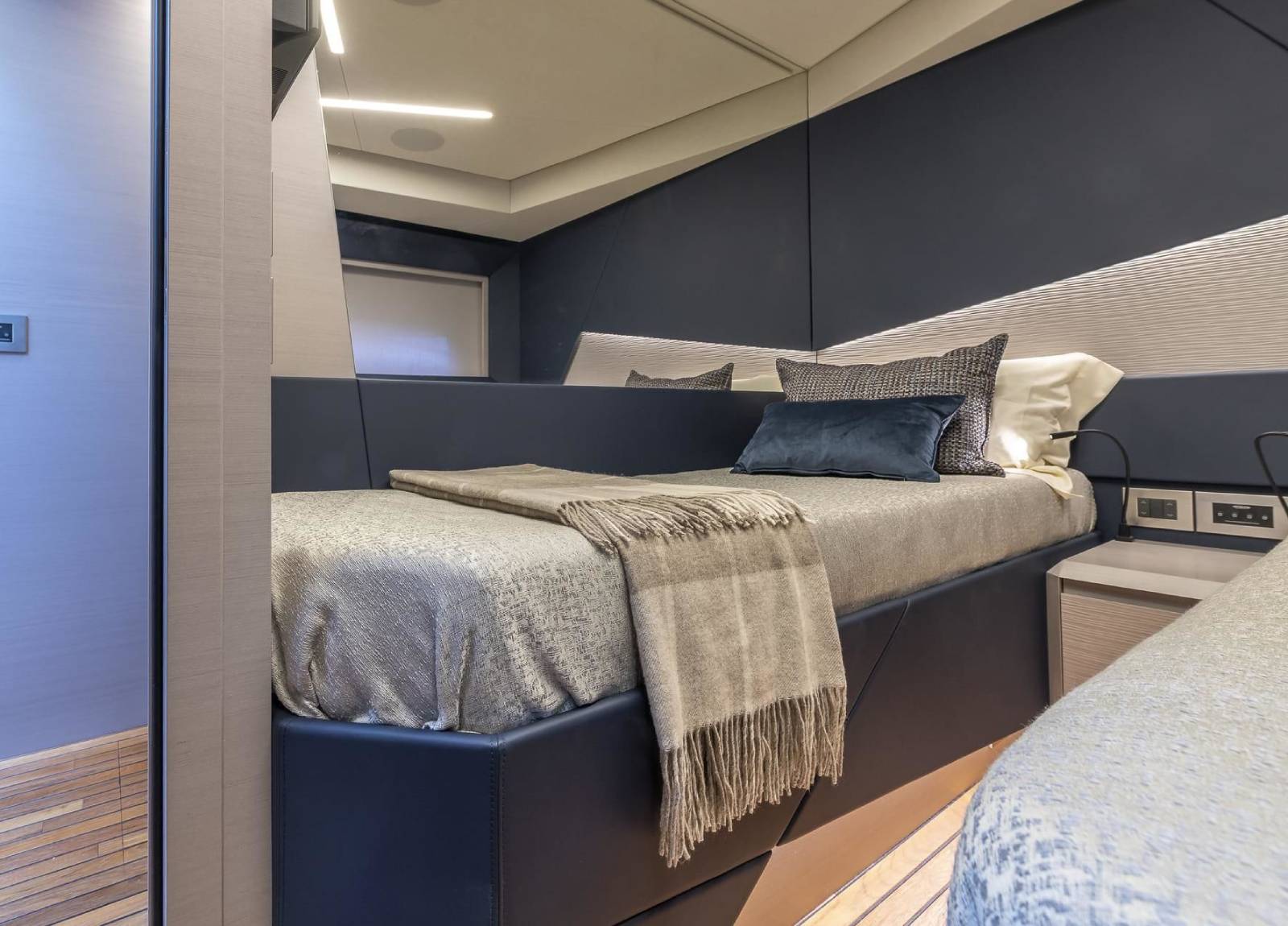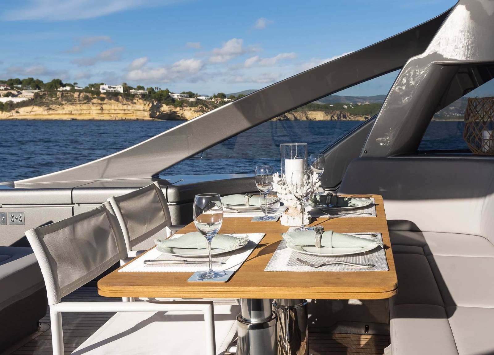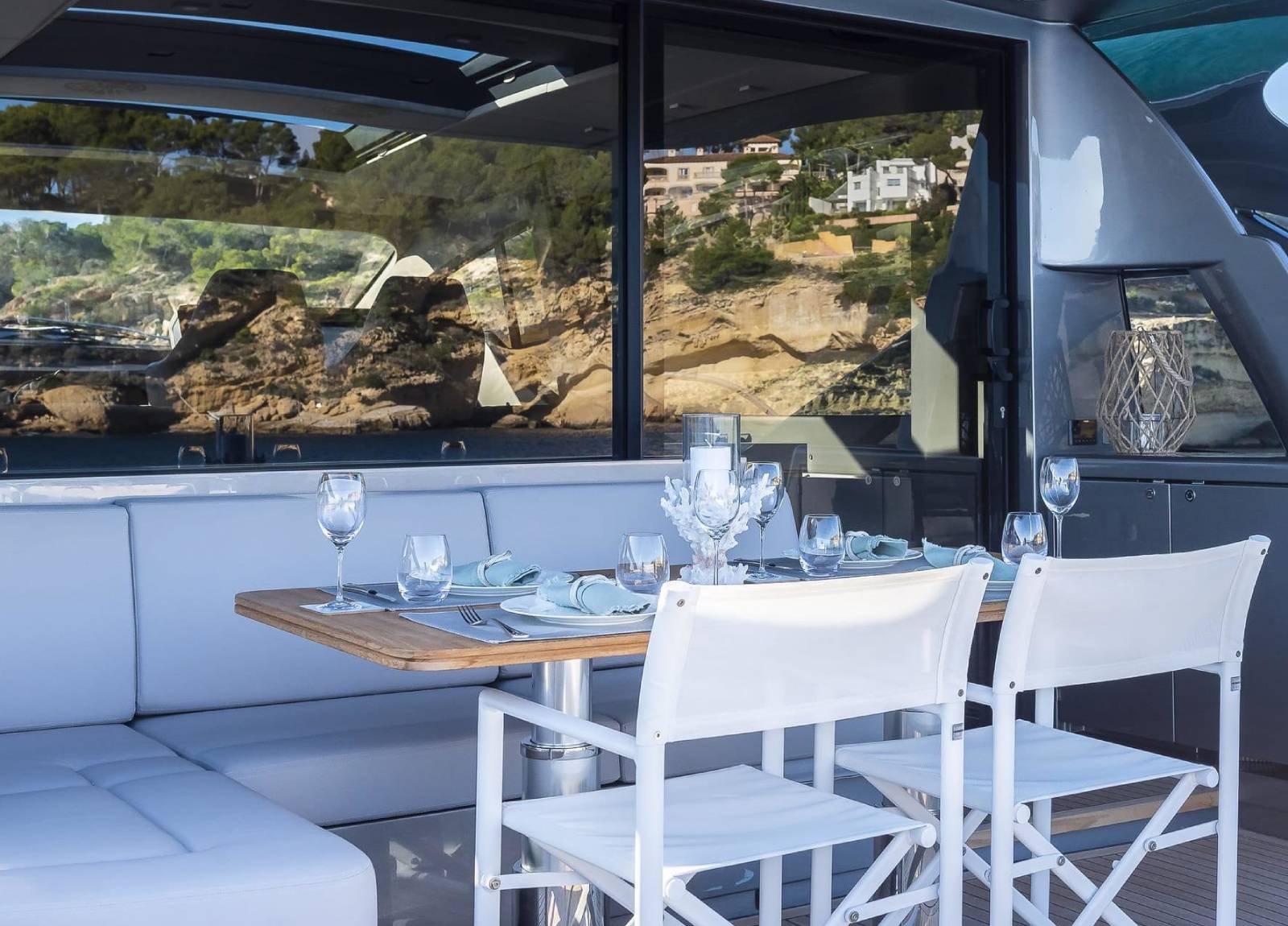 Die 2021 gebaute Pershing 7X “Marleena VIII” ist ein spektakulärer Carbon-Cruiser, der in nur zwei Stunden von ihrem Heimathafen im Yachthafen Moll Vell direkt vor der Kathedrale von Palma de Mallorca nach Ibiza fahren kann. Die Yacht ist mit Stabilisatoren für Fahrt und vor Anker ausgestattet, um ein ruhiges Cruisen zu gewährleisten. Ein weiteres Highlight ist die großzügige, hydraulische Badeplattform, die sich in einen Beach-Club verwandeln lässt, ideal für Wassersportaktivitäten. Marlene VIII verfügt über drei Gästekabinen für 6 Übernachtungsgäste, die von einer professionellen dreiköpfigen Crew, bestehend aus dem Kapitän, einer Köchin/Stewardess und einem Deckshand, umsorgt werden. Marleena VIII ist für Gäste geeignet die in Häfen übernachten möchten.