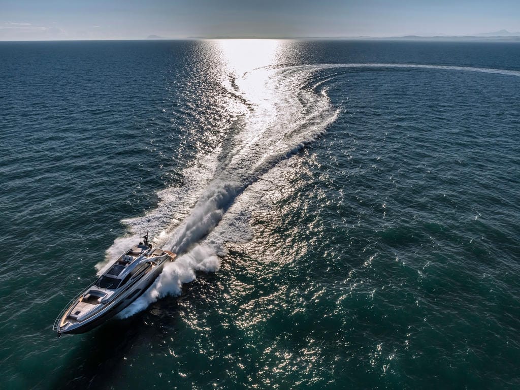 Die Luxusyacht verfügt über viele exquisite Highlights, darunter ein Unterwasser-Soundsystem und eine Unterwasser-Beleuchtung. Die geräumige Sport Fly verfügt über eine 5 qm große Sonnenliege mit der Option eines Bimini für entspannte Stunden an Deck.