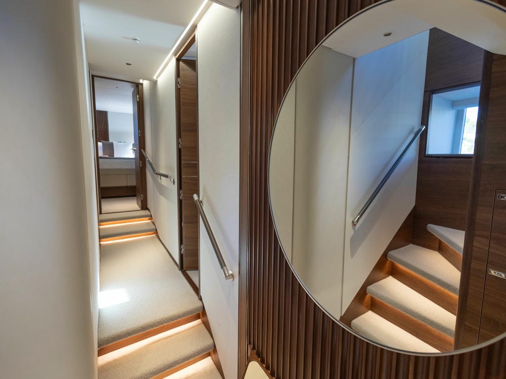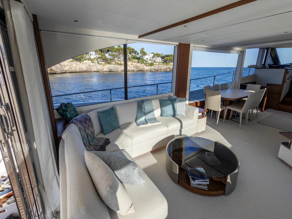Das Interieur der „Lumi“ überzeugt durch eine wohnliche, zugleich stilvolle Gestaltung, die eine warme und einladende Atmosphäre schafft. Großzügig gestaltete Außenbereiche laden zum Sonnen, Entspannen und zu geselligen Stunden an Deck ein.