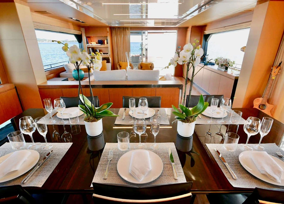 Die Yacht verfügt über fünf geräumige Kabinen, die bis zu 11 Übernachtungsgäste beherbergen können, ideal für große Familien.