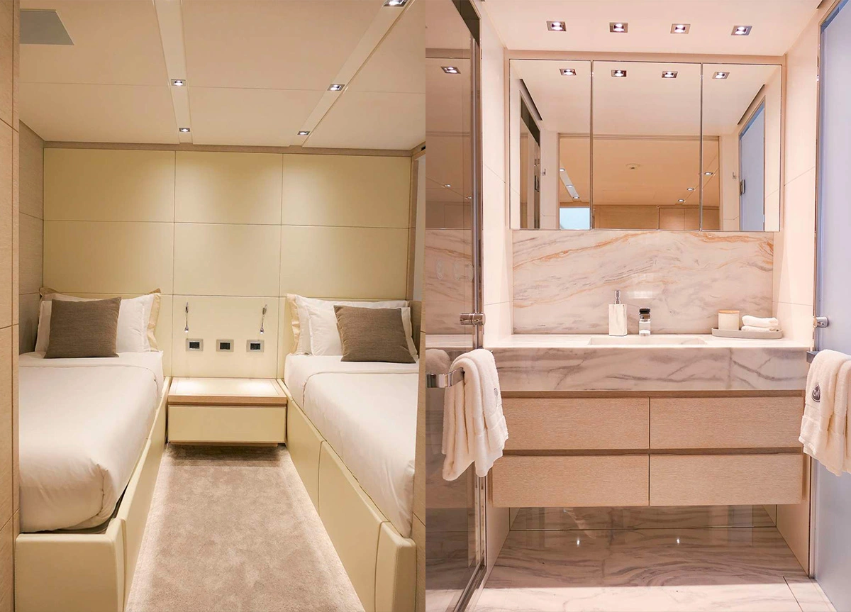 Die stilvolle italienische Yacht bietet Platz für bis zu 10 Gäste in fünf Kabinen. Eine 6-köpfige Crew sorgt dafür, dass Gäste während ihres Aufenthalts an Bord einen tadellosen Service genießen.