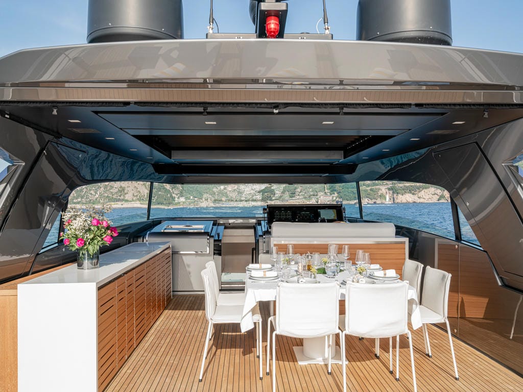 Ein besonderes Highlight der Yacht ist der Beach Club, der direkten Zugang zum Meer bietet und perfekt zum Schwimmen, Sonnen oder für Wassersportaktivitäten geeignet ist.