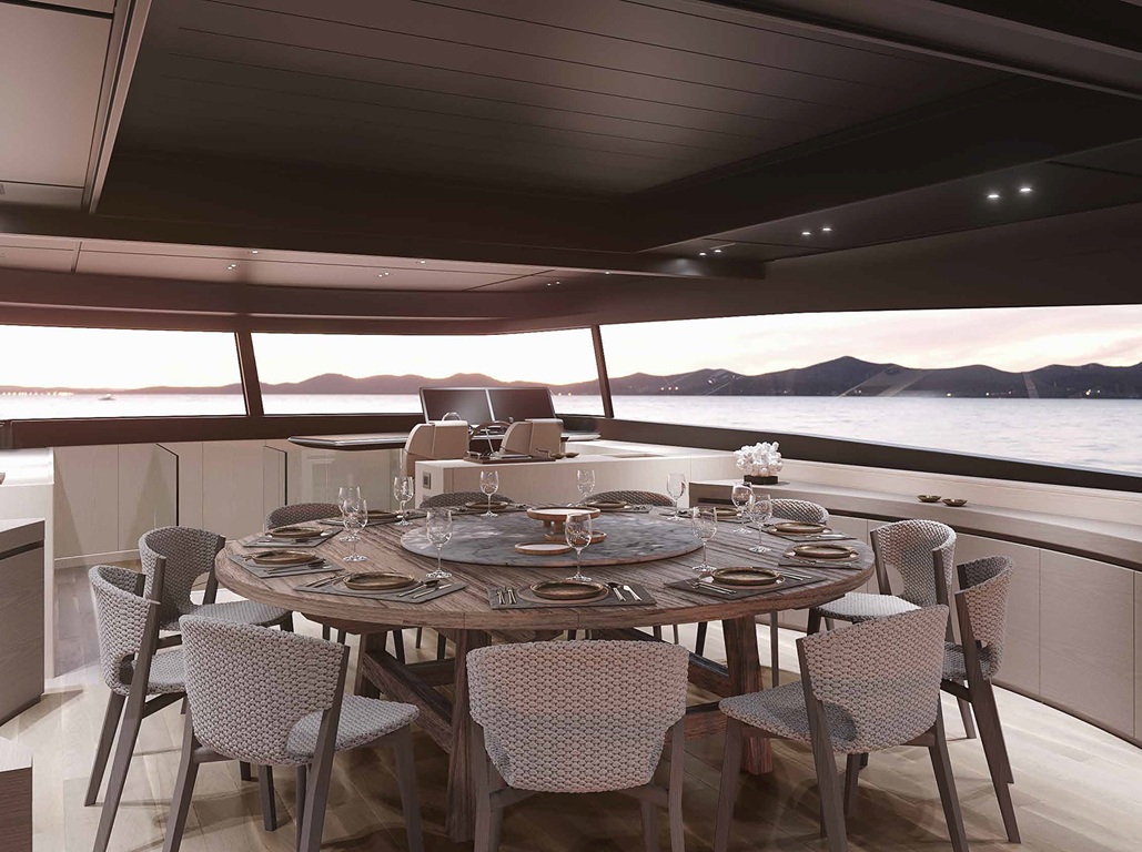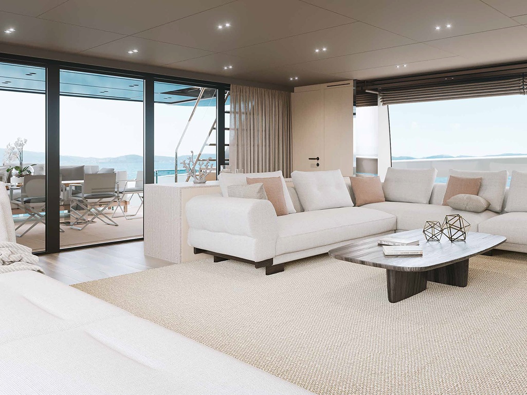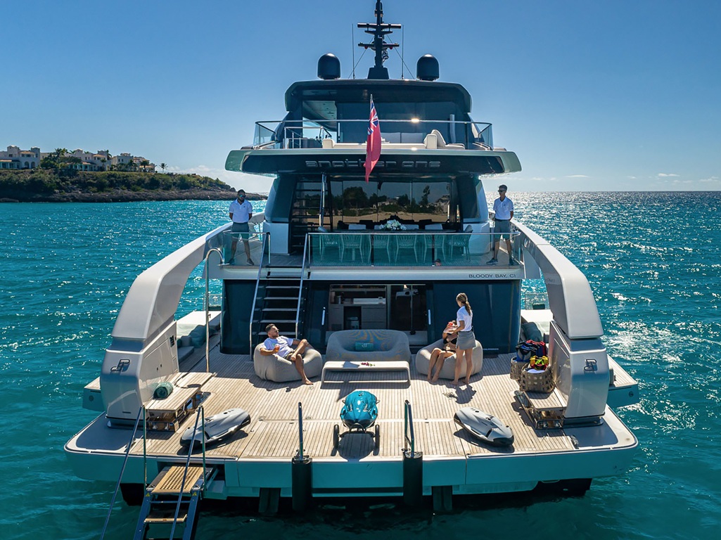 Besonders hervorzuheben sind die weitläufigen Außenbereiche der „On Time“, die außergewöhnlich viel Platz für Entspannung und Geselligkeit bieten. Ob auf den großzügigen Sonnendecks, im Jacuzzi oder im eleganten Beach-Club-Setup direkt am Wasser – hier entsteht ein Ambiente, das keine Wünsche offenlässt und die perfekte Balance zwischen Luxus und mediterraner Lebensfreude schafft.