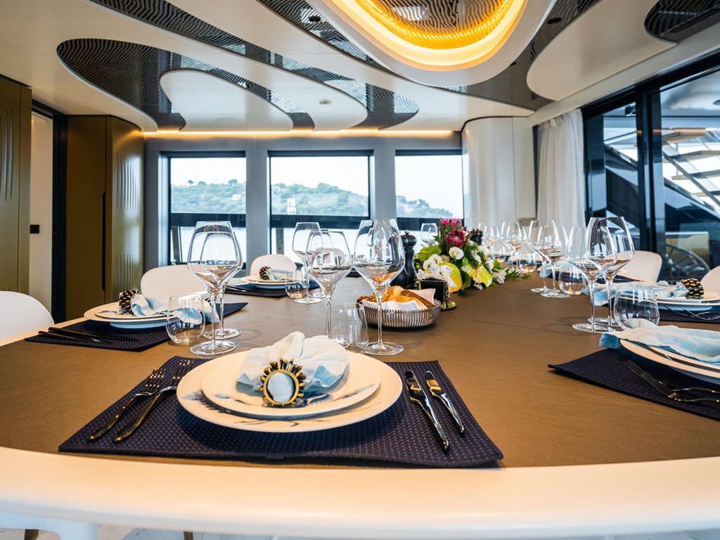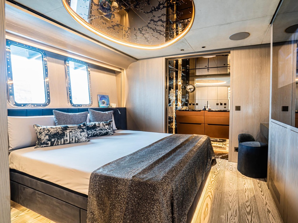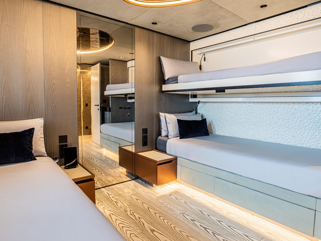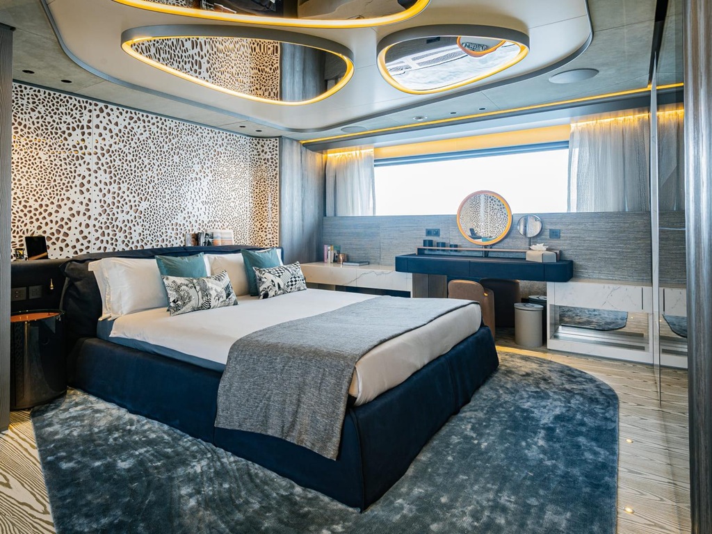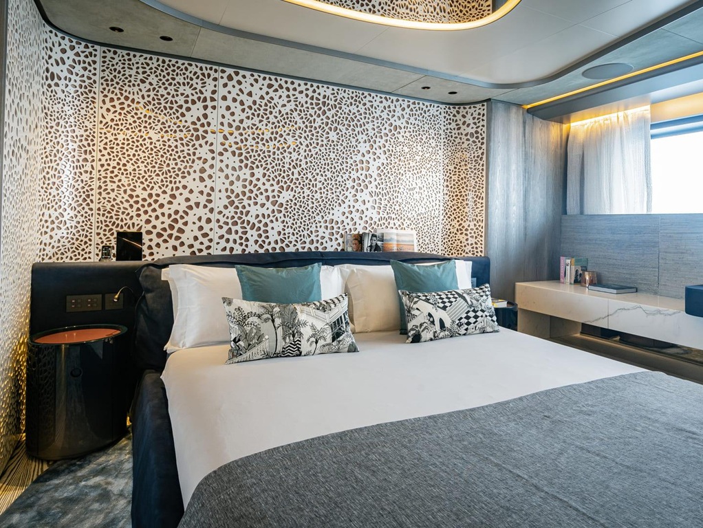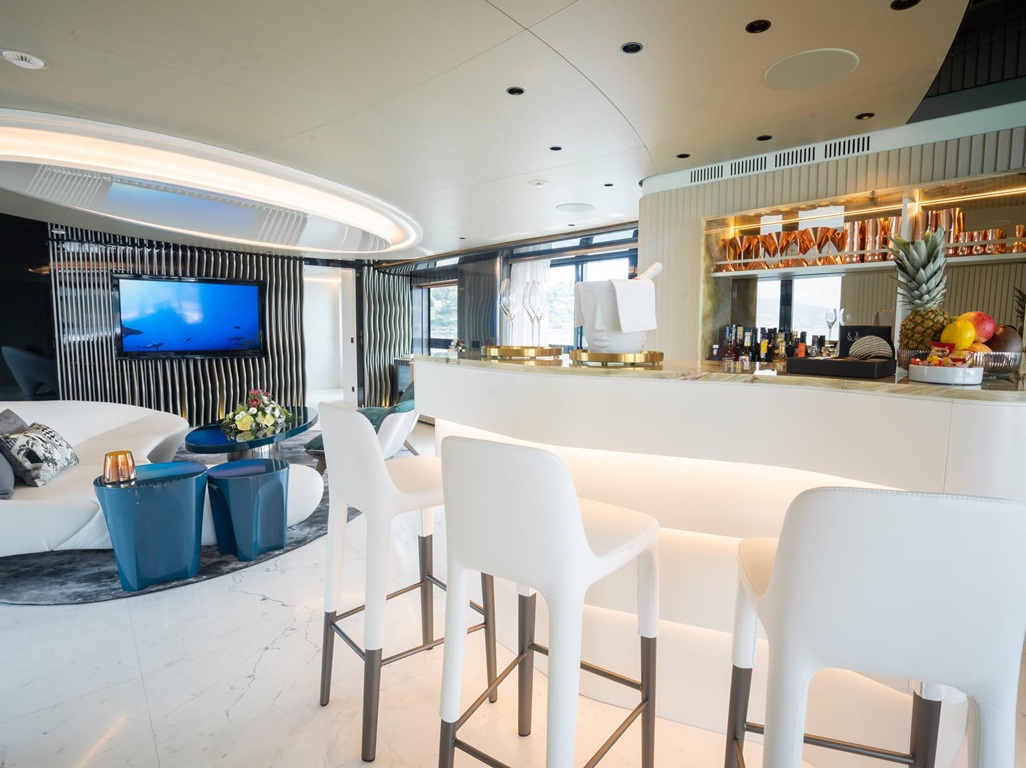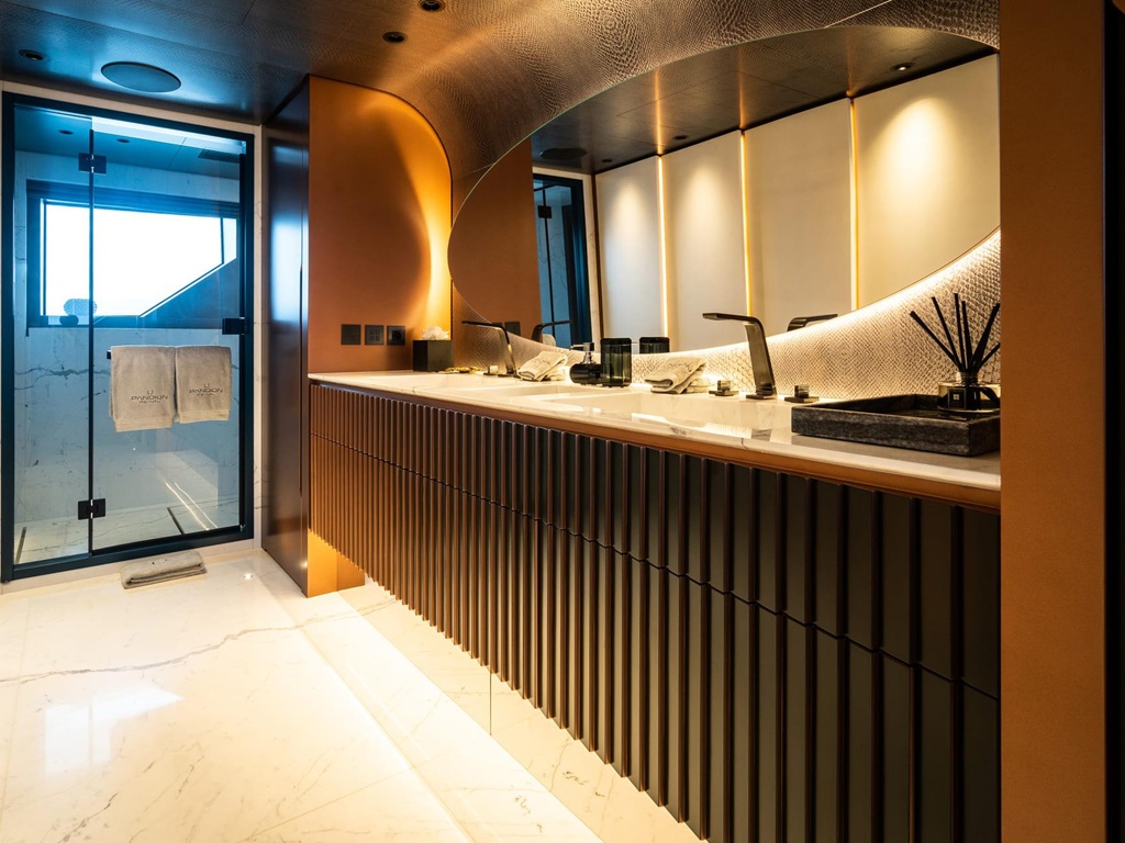 Das Interieur der „Pandion Pearl“ begeistert mit einem traumhaft stilvollen und lichtdurchfluteten Design, das Eleganz und Wohlfühlambiente perfekt vereint. Besonders hervorzuheben sind die luxuriöse Master-Suite auf dem Hauptdeck, großzügige Außenbereiche mit Jacuzzi sowie ein Beach Club, der unmittelbare Nähe zum Meer schafft. Ein voll ausgestatteter Fitnessbereich rundet das Angebot für aktive Gäste ab.