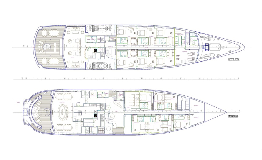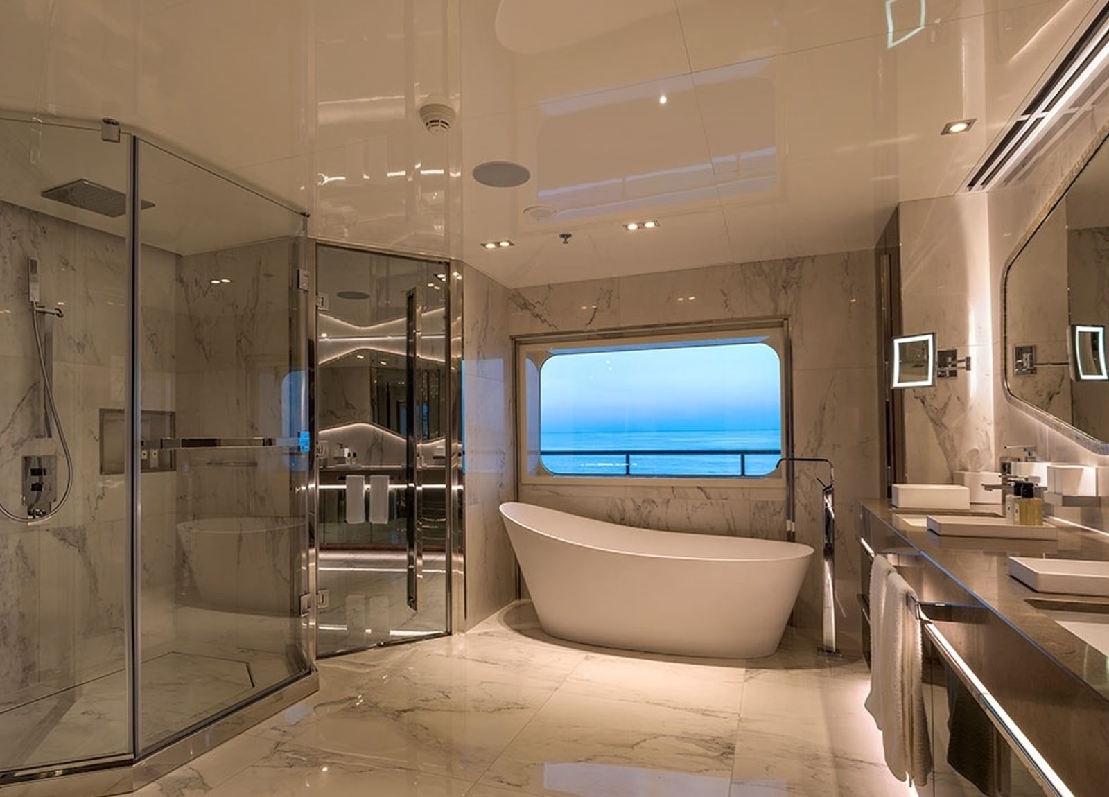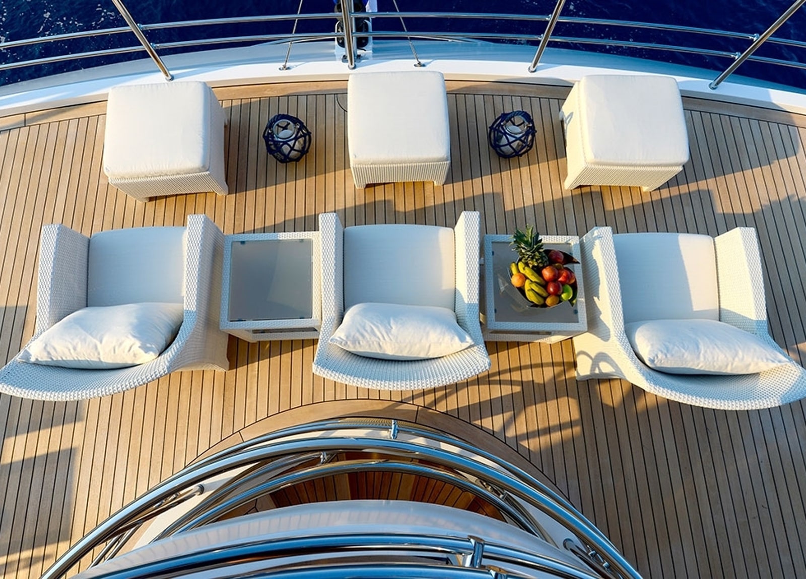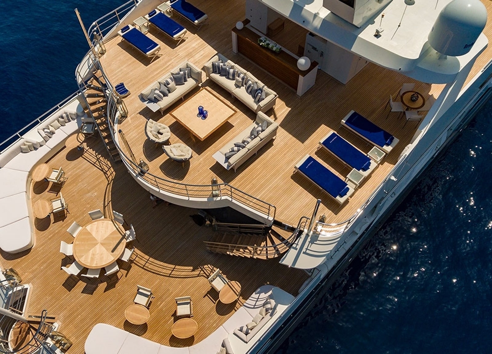 Mit beeindruckenden Abmessungen und dem exklusiven Design bietet die Yacht Raum für Entspannung, Unterhaltung und Abenteuer gleichermaßen. Zu diesen Highlights gehören ein großer Deck-Jacuzzi , ein privates Kino , ein eleganter Massageraum und ein voll ausgestattetes Fitnessstudio , das keine Wünsche offen lässt.