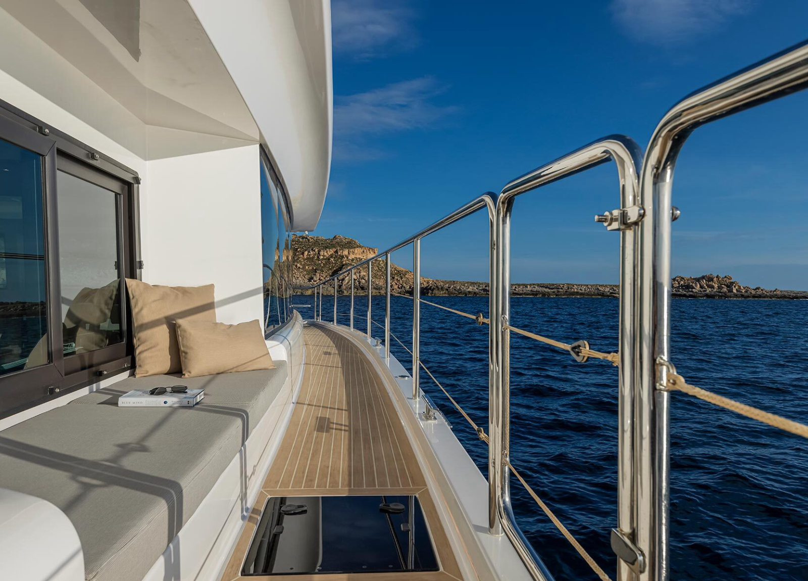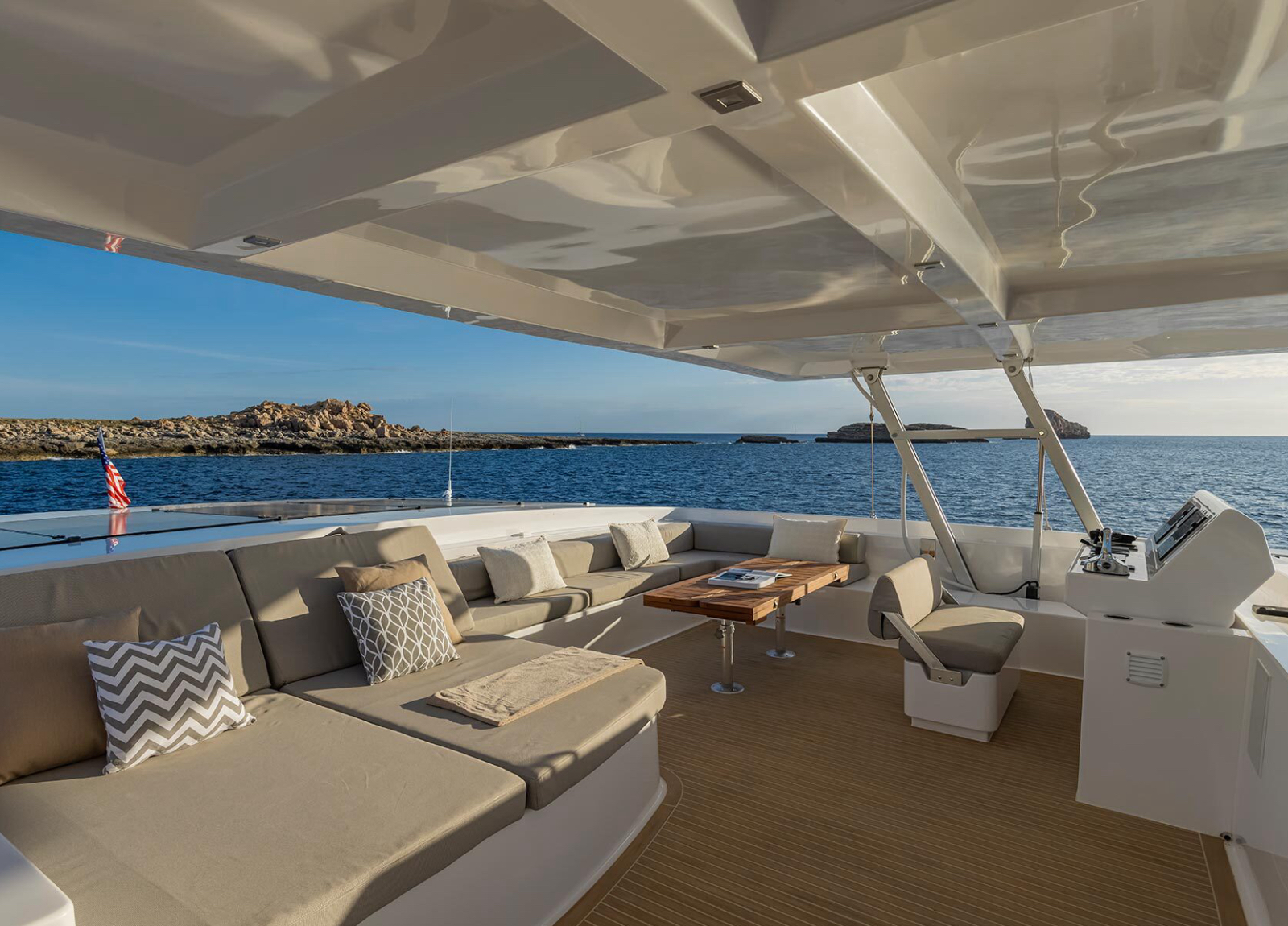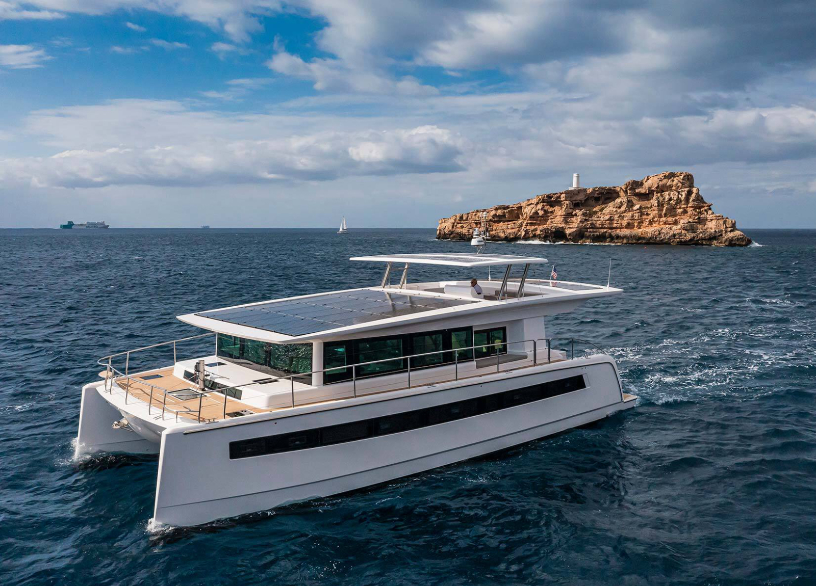 Voll elektrisch, ist die Yacht umweltfreundlich und ideal, um die Schönheit des Mittelmeers zu genießen.