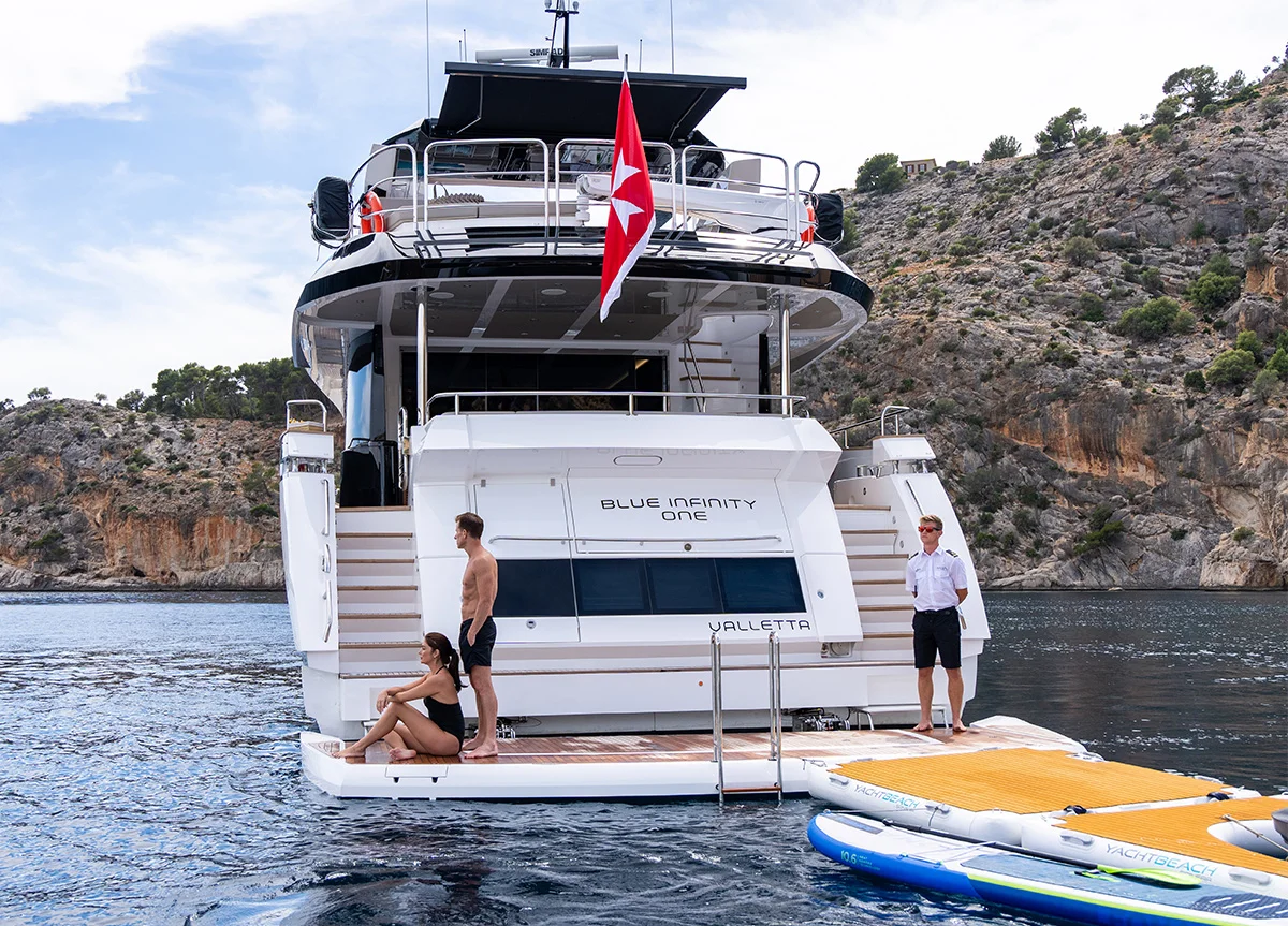 Gäste, die gerne Wellness genießen, werden von dem Jacuzzi begeistert sein und sportliche Reisende werden die Spielzeuge auf der Yacht lieben, einschließlich Jet Ski, efoil und Seabob.